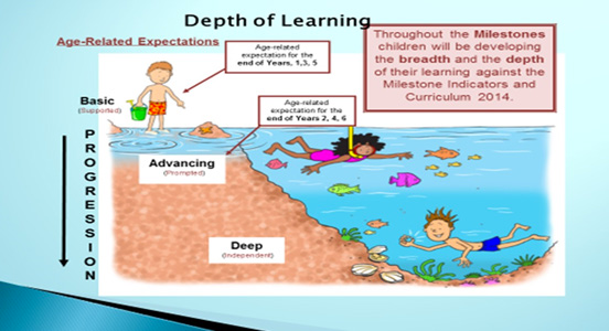 From September 2018, we have been using “Depths of Learning” in order to assess children’s learning. We will assess their progress in each subject, including personal development, by reviewing the depth of their understanding using the Chris Quigley “Depth of Learning Index”.